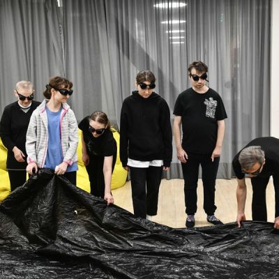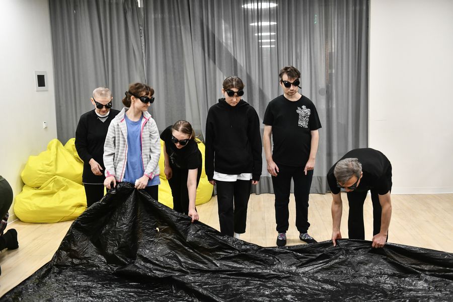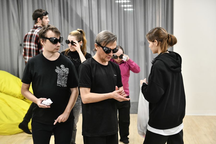 Сейчас мы готовим новый спектакль по пьесе Коляды, в основе которой рассказ Герберта Уэллса «Страна слепых». Так выглядит наша репетиция.